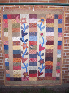 A partially completed top from an unknown quilter. I button holed the row of applique on the right and added side and top borders. Nice to collaborate with a kindred spirit.